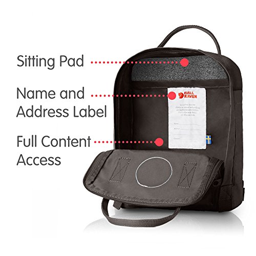 Kanken was released in 1978 to help prevent back problems seen among Swedish school children and over the years has become one of Fjallraven' s most popular products. Kanken Mini is suitable for smaller children and even adults who want to have a small backpack. It is perfect for a change of clothes at kindergarten, a packed lunch for an outing or as a convenient everyday bag for a wallet, water bottle, piece of fruit or the like. The shoulder straps are long and adjustable so they fit both little and big backs. They can be fastened with a button so they are not in the way when they are in their smallest position. Kanken Mini is made from durable and light Vinyl on F fabric that is water and dirt resistant. The main compartment has a large zippered opening that makes it easy to pack and unpack. There are two flat side pockets and a front pocket with a zipper. It comes with a sitting pad that is stored in the inside back pocket. There are handles on top and narrow, supple shoulder straps. The logo on the front doubles as a reflector.Feature