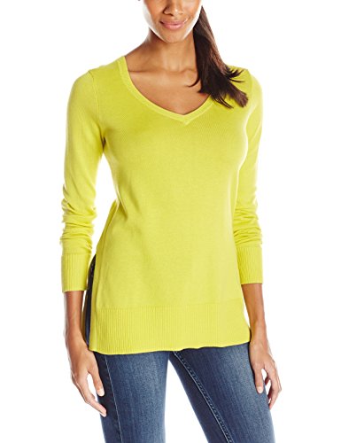 Relaxed cotton-blended V-neck sweater tunic with side slit detailing