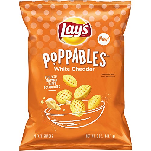 -. Feature : 5 ounce bag of lay's Poppables white cheddar potato snacks / Perfectly Poppable crispy potato bites / Great bag to share with friends, family, and coworkers
