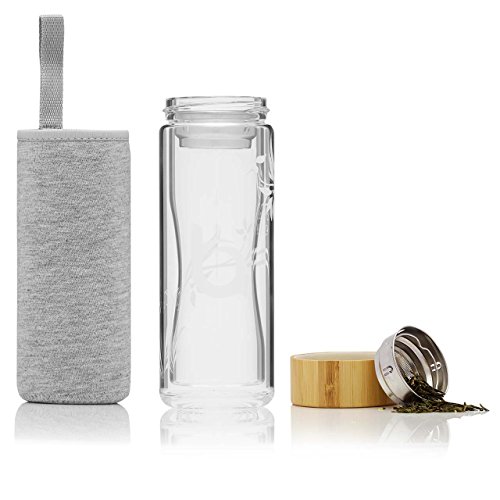 LUXURY AT YOUR FINGERTIPS: We pride ourselves in creating a product that is as elegant and beautiful as it is strong and durability. Comprised of glass, bamboo lids and sleeve, you will love the elegant way it feels and looks. With our tea mug with infuser and lid, you can forgo plastic and cheap parts that break and stop worrying about any toxins, dyes, or BPA getting into your drink. This high quality travel tea mug takes class to a whole new level while also being eco-friendly.