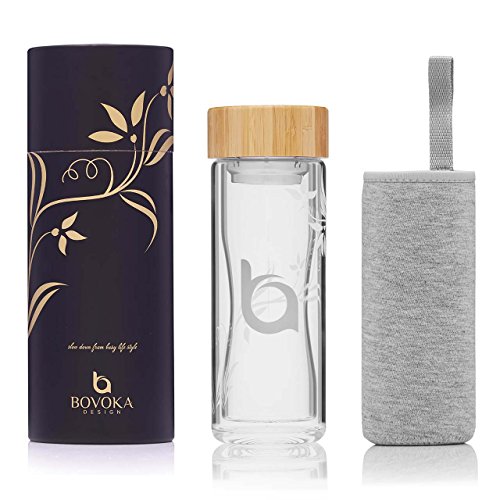 FRESH BREWED TEA WHEREVER YOU ARE: With the Bovoka tea and coffee tumbler, you can have fresh, delicious tea in your home, car, office, or while traveling. This double-walled, glass tumbler has a removable strainer that sits in the bottle to protect loose leaf tea to drink in. Just pour hot or cold water in the glass container, attach the tea tumbler strainer into the thermos, and let steep for desired flavor. It takes only moments to prepare and you can take it to go.