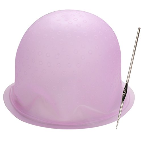 Highlighting Cap with Hook, Hapdoo Reusable Hair Color Salon Dye Silicone Caps with Metal Hook Needle Frosting Tipping Tools, Pink
