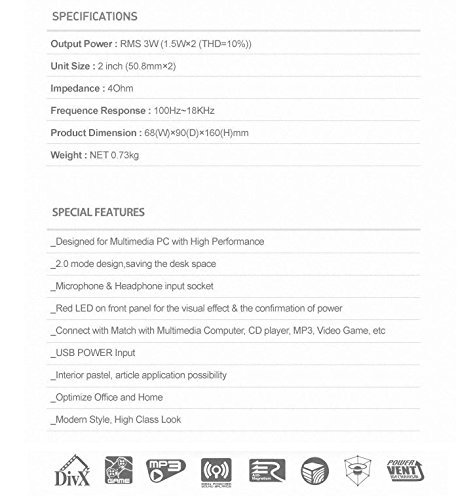 전면으로 전원 버튼,음량 조정,헤드폰 단자,마이크 단자 / 2.0ch multimedia speaker