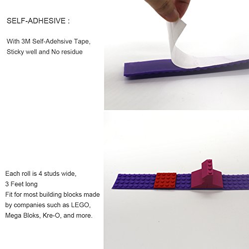 - QUALITY: The rolls are compatible with Most Major Brands of Building Bricks ,like LEGO Blocks, Mega Bloks, Kreo and most major toy building block systems. If you want your child to have a toy that will let him create something straight from his imagination then our building blocks tape are just the ticket. We designed it with food-grade silicone which passed CPSIA CPSC EN71 test for worry-free play. The rolls are 3ft long giving your child lots of awesome excitment.