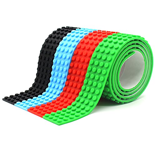 LattoGe Silicone Building Bricks Block Tape (4 Rolls 4 Studs )Stick Baseplate Plates Self Adhesive for Lego Figures Table Construction Toys(Wide Size(Black+Red+Light Blue+Green))