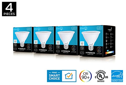 Hyperikon PAR30 Short Neck LED Bulb, Dimmable, 10W (65W Equivalent), 2700K (Warm White), 800 lm, CRI 90+, Flood Bulb, Medium Base (E26), UL & ENERGY STAR - Great for Living Room, Basement (4 Pack)