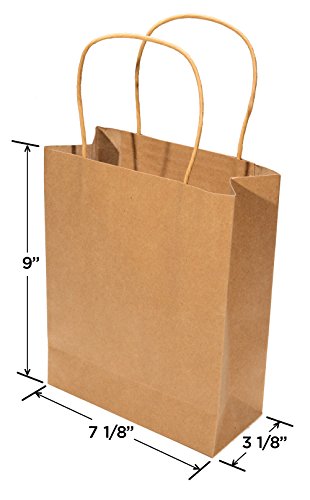 VALUE PACK: 24 bags included. Each bag has strong twisted paper handles & measures 9“ x 7” x 3”