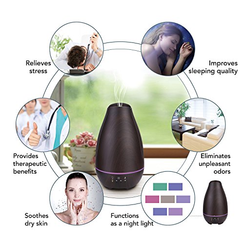 - ELEGANT AND MULTIPLE USE - With elegant wood-grain coating and exquisite shape, the fragrance diffuser would also be a good choice for modern decor. Wherever you place the diffuser (spa, nursery, yoga studio, office, or your comfortable room), the atmosphere can be greatly brightened up.
