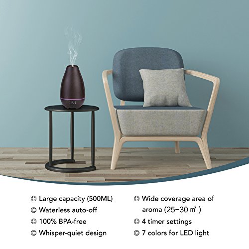 MARNUR Essential Oil Diffuser 500ml Aroma Diffuser Cool Mist Humidmifier Large Ultrasonic Aromotherapy Diffuser Wood Grain with Touch Control Auto Shut-off Waterless Protection Timer Setting Colorful