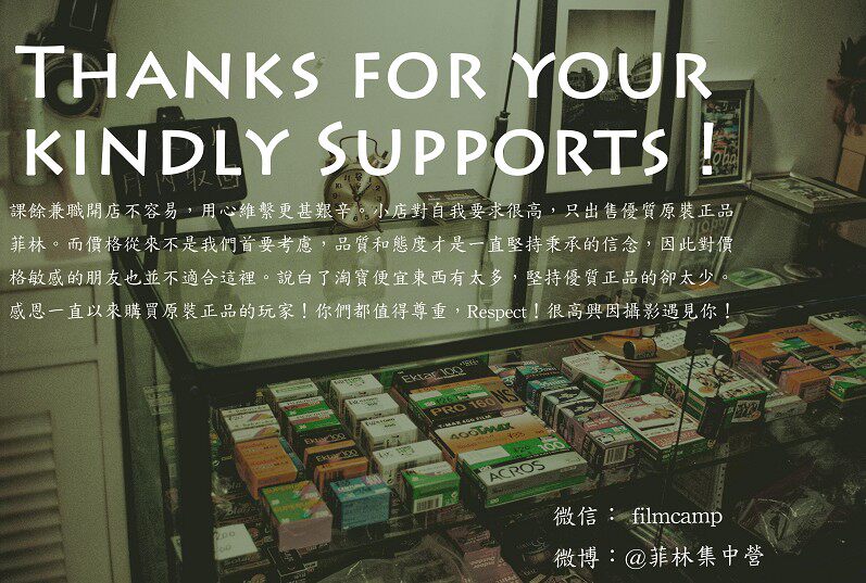 開此店純為自玩自賣性質.. 毛利十分低廉.. 只想在自己玩film的同時亦把好的菲林膠卷享諸同好..! 延續菲林不死的精神.. 讓更多人投入到菲林/膠卷黨的行列.. 真正意義上重新認識攝影..!