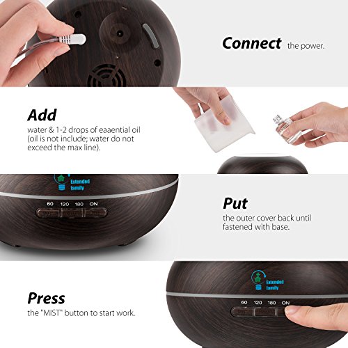 EXTENDED FAMILY 300ml Cool Mist Humidifier Ultrasonic Aroma Essential Oil Diffuser-Wood Grain