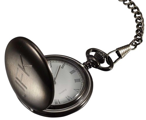 -. Feature : Free engraving in Helvetica font: First, Middle, Last name initials / Metal case with brushed gun metal finish / Japanese quartz movement; Roman numeral dial / 12-inch chain included / Ideal gift for Groomsmen, Best Man, Father of the Bride, Anniversaries, etc.