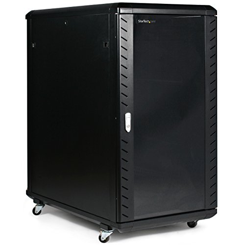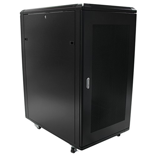 The RK2236BKF 22U 36in Knock-Down Server Rack Cabinet with Casters features a vented glass front door and mesh rear door that provide devices stored in the cabinet with energy and cost-efficient passive cooling.