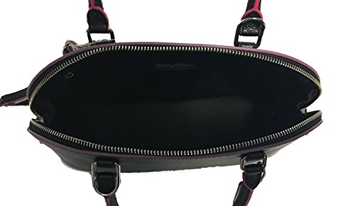-. Title : Cross Grain Leather Sierra Satchel Crossbody Bag Purse Handbag (SV/Black Multi)