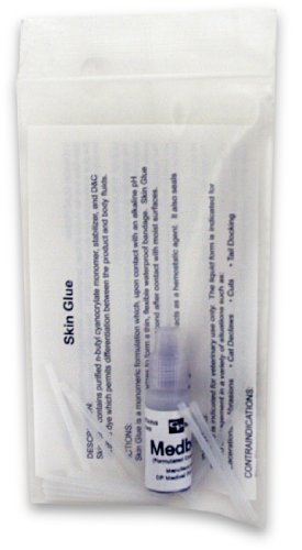 -. Feature : Skin glue forms a thin, flexible waterproof bandage / Skin glue polymerizes in approximately one second after contact with moist surfaces / Perfect for: Lacerations, Cat Declaws, Cuts and Tail Docking