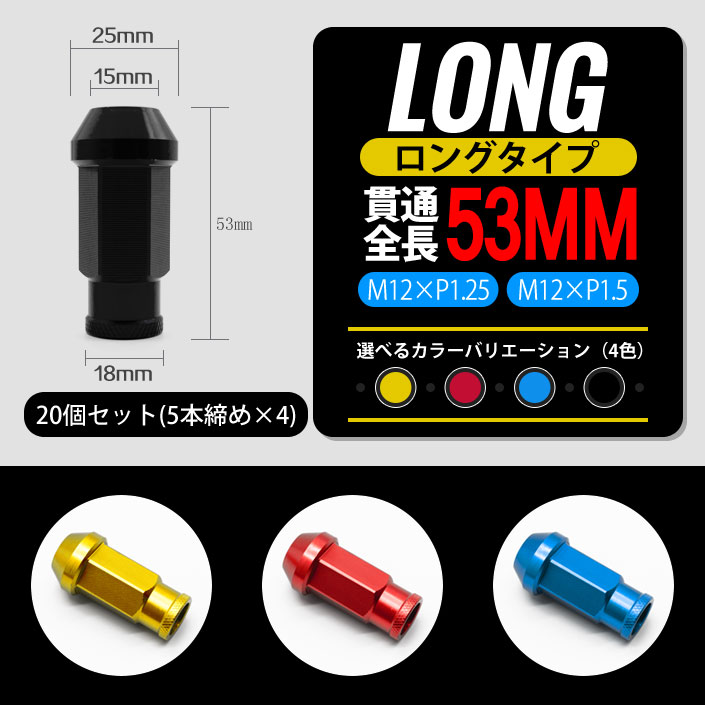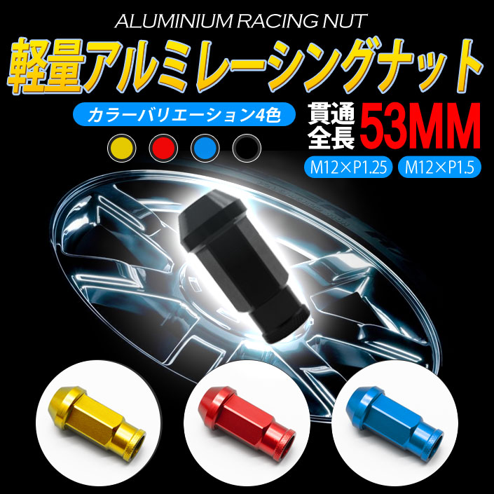 軽量アルミレーシングナット 52mm【貫通型】4色から選択可能![M12×P1.25][M12×P1.5]