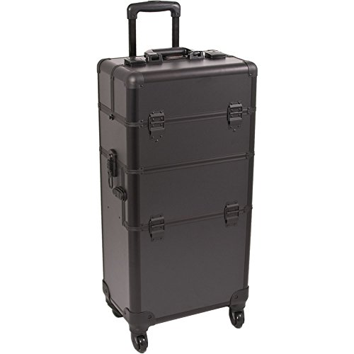 2-in-1, 360 degree professional trolley makeup case in this beautiful new black matte with black aluminum trimming