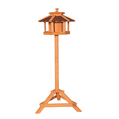 - This is a luxurious bird feeder, made of natural wood, with meticulous work, with ceramic tiles on the roof, and the food that feeds the birds will not get wet.
