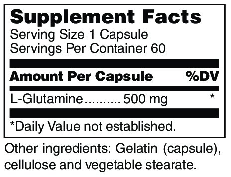 L-Glutamine 500 mg capsules, provided by Douglas Laboratories, contain 500 mg of pure crystalline L-glutamine (USP).