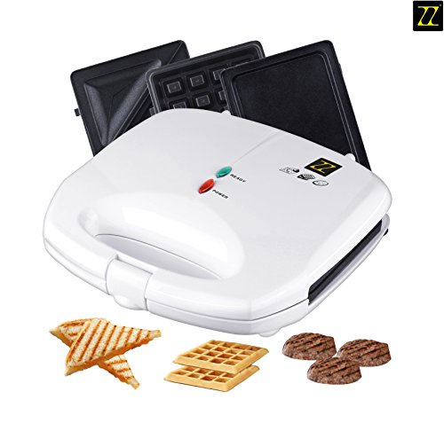 ZZ S61421-W 3 IN 1 SANDWICH WAFFLE AND BREAKFAST MAKER WITH NON-STICK PLATES, WHITE
