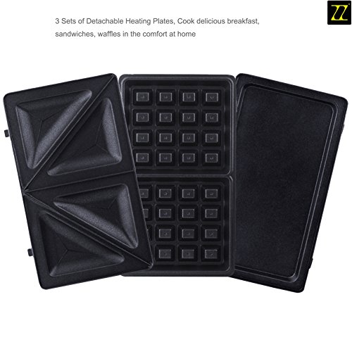 • 3 Sets of Detachable Heating Plates, Cook delicious breakfast, sandwiches, waffles in the comfort at home