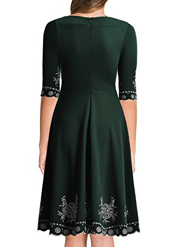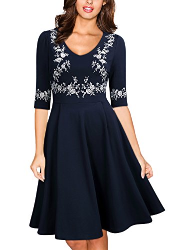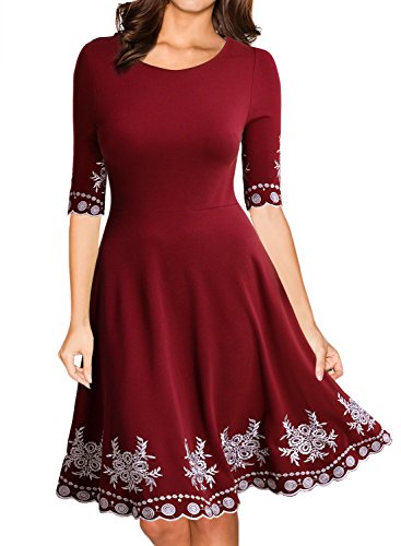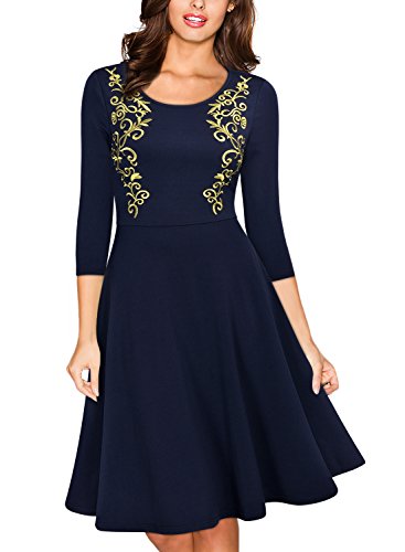 Women's Vintage Scoop Neck Embroidered Half Sleeve Casual Swing Dress