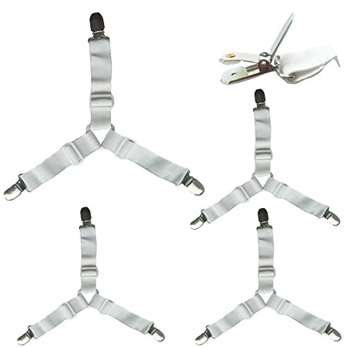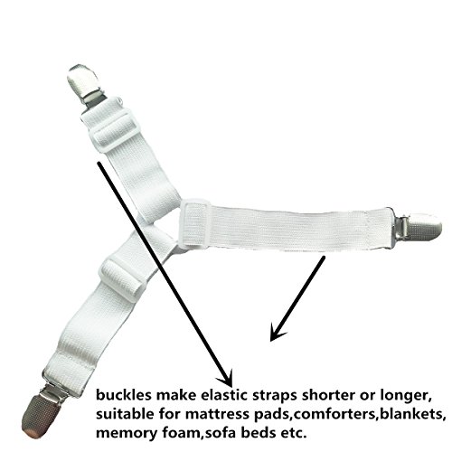 Material: Plastic buckles + elastic band +Metal Clips.mattress clips holds mattress pads in place,a simple solution that's easy to use,just attach heavy duty clips and make the bed as usual.suitable for mattress pads,comforters,blankets,memory foam,sofa beds,etc.