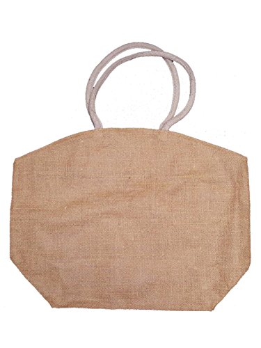 Jute Burlap Beach bag with stuffed cotton handles and zippered closure 22"W x 17"H x 8" Gusset - Carrygreen Bags