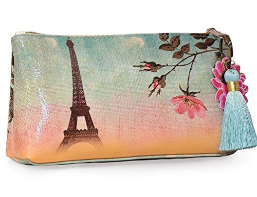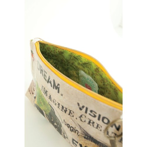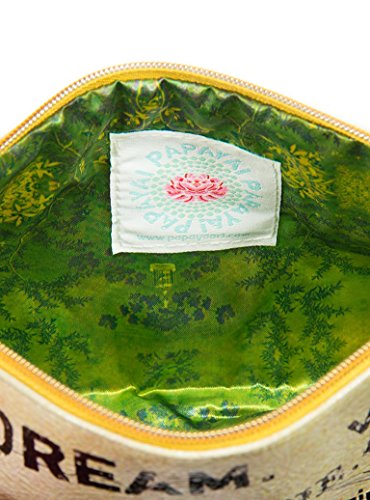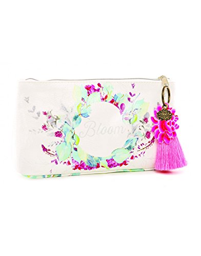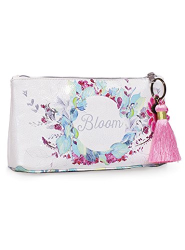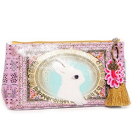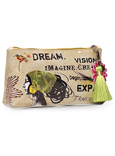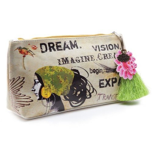 Product Description Small Accessory Pouches are perfect for stashing away makeup, jewelry, or art supplies on all your adventures. Use for travel, or tuck it under your arm as an everyday clutch. Constructed from a durable oilcloth-like material. Features contrast lining, zip closure, and a metal lotus charm. Comes with a coordinating tassel key chain. 10" x 5" x 2" 0