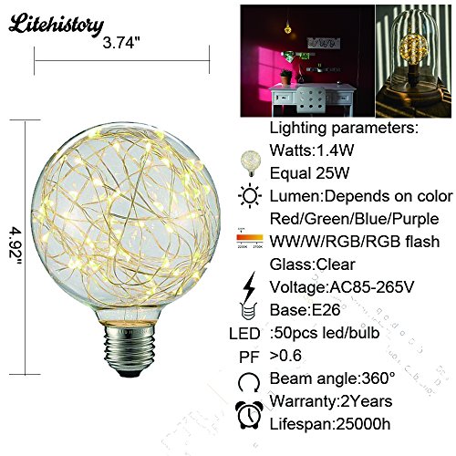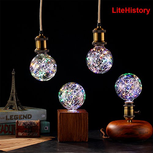 LiteHistory G30/G95 LED globe bulb,E26 Christmas Decorative starry string light bulb,Vintage LED Edison bulb Fairy light bulbs,Clear,for Christmas,Holiday,Party and Wedding,RGB twinkling,1-Pack