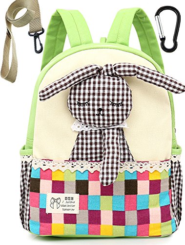 -. Feature : SIZE : 9.8in*4.7in*11.4in (L*W*H); Weight: ultra light design, only 0.52lb; / STRUCTURE: 1, the backpack looks is like a very cute little rabbit. 2, the rabbit is 3D design,the expression of the rabbit is shy and moving look shy moving, it is very suitable for girls to use. 3, It can accommodate the size of A4 paper books. 4, there is a side pocket on each side of the Backpack. / STYLE : This backpack has a total of 4 colors (green, blue, pink, red). Its capacity is enough to hold all the things that your children need for school ,such as books, pencil box, iPad and so on. If you go to travel or hiking, you also can pack the things that owned by your children, such as cup, snacks ,toy and lunch box etc. / Children age and height range: under 36 months age or Height below 3.6 feet.
