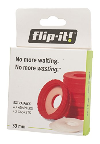 SAVE TIME & MONEY! Contains 4 extra RED ADAPTERS for use with Base Cap/Stands that come in other FLIP-IT! BOTTLE EMPTYING KITS. (Bottles and Purple Base Cap/Stands not included)