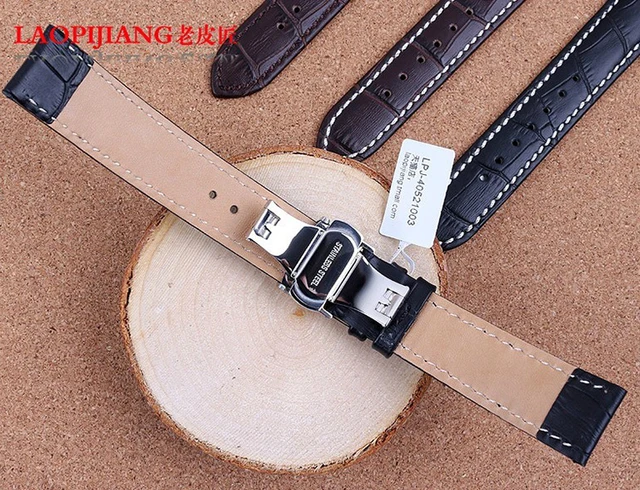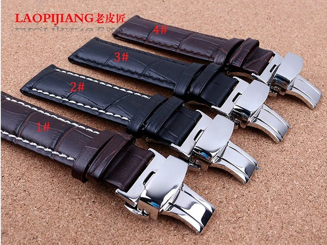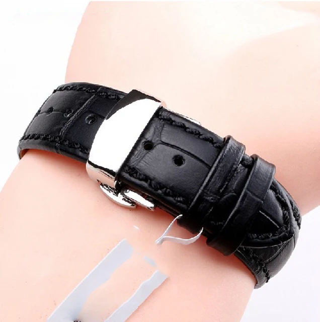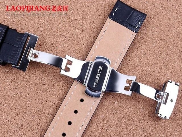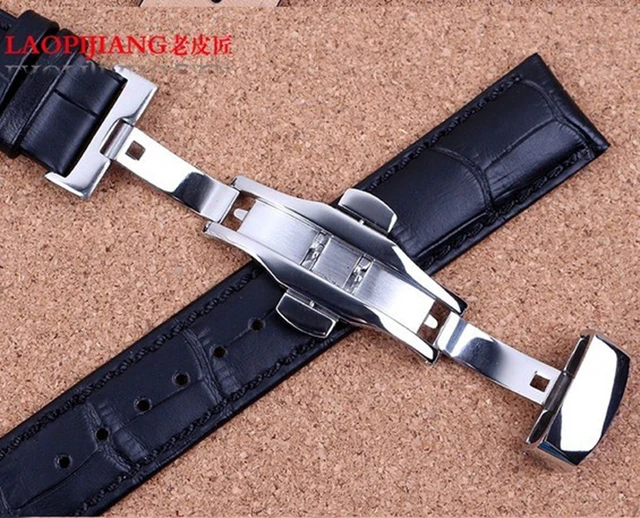 | [해외]블랙 가죽 손목 22 미리메터 실버 배포 나비 걸쇠 높은 품질의 소 가죽 정품 가죽 시계 스트랩 액세서리 |