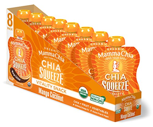 Creamy, delectable coconut and refreshing, sweet mangoes combine with organic carrots, pineapples, bananas and organic chia seeds to deliver a luscious, nutritious tropical treat! Perfect for lunchboxes, gym bags, briefcases and yoga sacks for an anytime snack! Our organic chia seeds are infused with delicious fruits and vegetables to create a convenient, fun and tasty snack for active people of all ages. Fueled with essential Omega-3s, protein, and fiber, Chia Squeeze is a satisfying anytime snack that naturally provides the vitality to power your soul’s purpose.Feature