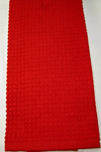 Coordinating Set of 2 Christmas Kitchen Towels White and Red Waffle