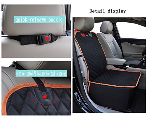 -. Feature : 1. Dog cover car:Made from 4 layers of Superior Materials,Our dog hammocks are manufactured from the highest quality, durable, waterproof fabric to provide our customers with a product that not only protects but will last for many years. / 2. Pet car seat protector:Equipped with a seat belt to keep your dog safe while driving, the rear seat cover has a real gap that can enter the seat belt. Storage bag: There is a fixed storage bag for easy storage of beauty products, water, belts, toys, pet food or other personal items, etc. / 3. Dog seat cover back seat:Universal, the dog's rear seat is designed to protect your car, truck or SUV from looking like new, while protecting the back seat and floor dirt, hair and so on. / 4. Waterproof pet seat cover:Durable and Waterproof and Non-slip Cover- It's made of polyester raw fiber fabric oxford cloth with PVC waterproof coating. A great helper to keep your car seat clean . It's also easy to fold up when not in use and easy to wipe down. / 5. Pet seat cover black :Easy to install and carry, clean. Applicable to large and small dogs apply, the use of very convenient. Give pets more space and give your car a high quality look inside. Let you have a wonderful journey.