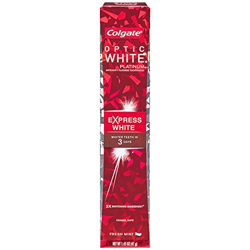 Colgate Optic White PLATINUM Express White Toothpaste is a revolutionary product in the Optic White collection. This breakthrough formula gives users whiter teeth in just three days just by brushing (for best results, use as directed for 4 weeks) . The toothpaste contains 2x more of the whitening ingredient, Hydrogen Peroxide (Vs Optic White Sparkling Mint). Having a radiant and polished look is quick and easy with Colgate Optic White PLATINUM Express White.Feature
