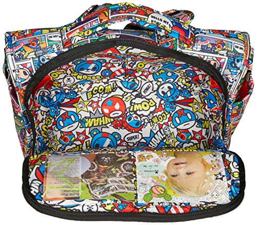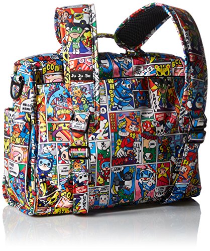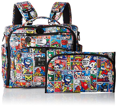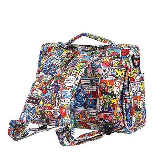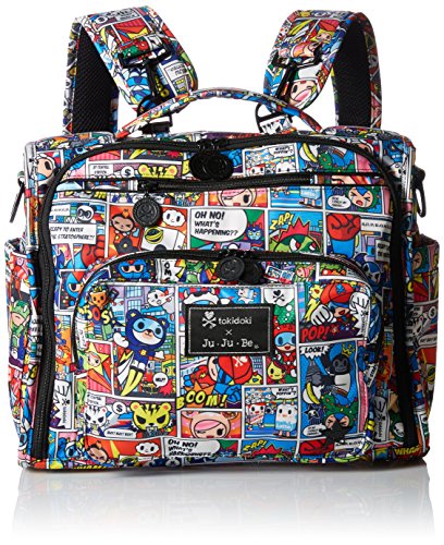 The Ju-Ju-Be Tokidoki Collection B.F.F. Convertible Diaper Bag provides multiple carrying and storage options to help you stay ultra-organized. Just like your B.F.F., this machine washable backpack is something you cannot live without. Designed with convenience and comfort in mind, this versatile bag can be carried using its top handle, over-the-shoulder strap or backpack straps. The memory foam straps have textured fabric underneath to prevent the bag from slipping off your shoulder. Keep organized and sane, while never sacrificing looking good. The bag's lining is protected with Agion natural antimicrobial treatment, which inhibits and reduces the growth of odor-causing bacteria, mold and mildew. The outer fabric is treated with Teflon fabric protector, so you can repel stains and keep it clean. The front "mommy" zippered pocket is large enough for smartphones, wallets, keys attach to the key fob stretch cord, and other personal items. Inside organization includes (4) gusseted pockets, (3) zippered pockets and lots of wide open space. The main zippered pocket is large enough for diapers, wipes, extra clothes and other items. The back pocket is designed with crumb drains to keep this area clean, is large enough to store your child's books, and includes a super cushy matching memory foam changing pad. Bottle pockets are located on either side of the bag and come insulated with Thinsulate by 3M to keep your items hot or cold. You can choose to wear it as a backpack or messenger style. All Ju-Ju-Be Bags come with a Lifetime Limited Warranty against manufacturing defects when purchased from an Authorized Ju-Ju-Be Dealer. Authorized Dealers can be found in the images. Founded in 2005, Ju-Ju-Be is a Southern California company that uses science, style, and attitude to create diaper bags, purses and other fashionable accessories. Ju-Ju-Be assimilated the most advanced technology possible to create a stylish and intelligent product line that's unrivaled in the industry.Feature