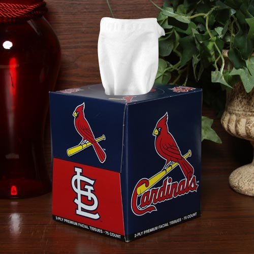 Studio : Football Fanatics Publisher : Football Fanatics Binding : Sports Product Description St. Louis Cardinals Box Of Sports Tissues 75 Count solid white tissues 2-Ply premium facial tissues Officially licensed MLB product Box measures 4.25" x 4.25" x 5.25" 2-Ply premium facial tissues 75 Count solid white tissues Box measures 4.25" x 4.25" x 5.25" Team logo and colors Made in the USA Officially licensed MLB product 0