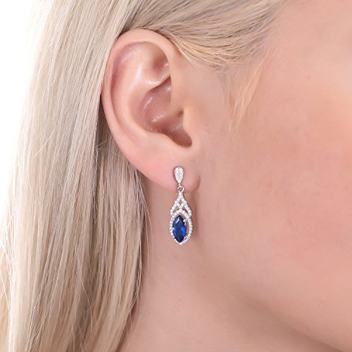 -. Feature : METAL: rhodium plated .925 sterling silver, stamped 925, high polished finish, nickel free. / PREMIUM QUALITY STONE: Main Stone: 1.62 carat marquise cut simulated blue sapphire cubic zirconia (12mm x 6mm), Side Stones: 1.9 carat marquise cut simulated blue sapphire cubic zirconia (10mm x 5mm), Accent Stones: 0.82 carat cubic zirconia / STYLE: Art Deco - Inspired by vintage styles with irresistible old-world charm. STYLE: This 2-piece art deco halo earrings and pendant necklace set blends vintage style elements, elegance and uniqueness with a dazzling halo effect.