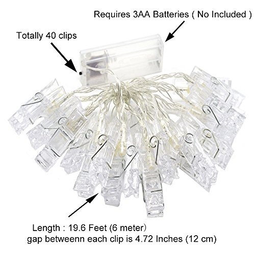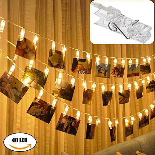 - ☀ELEGANCE AND AMBIANCE : Total 40 clear photo-clips,each LED bulbs equipped with a transparent clip which can nip photo or other small Items creating romantic and a warm atmosphere, spreading light and cheer across a wide area.