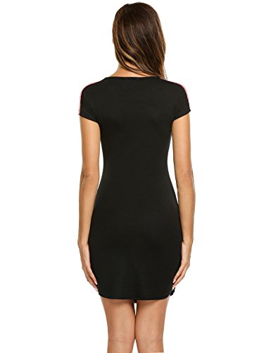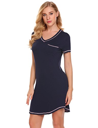 -. Title : Ekouaer Sleepshirt Women Short Sleeve Stitching V-Neck Cotton Contrast Color Sleepwear Dress
