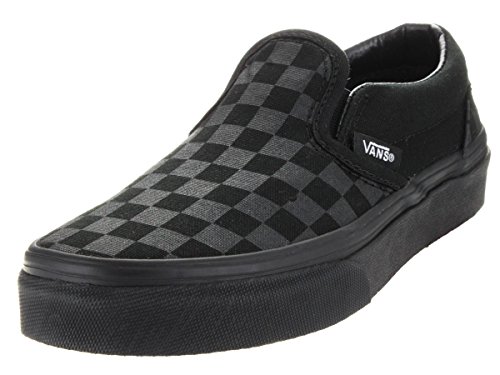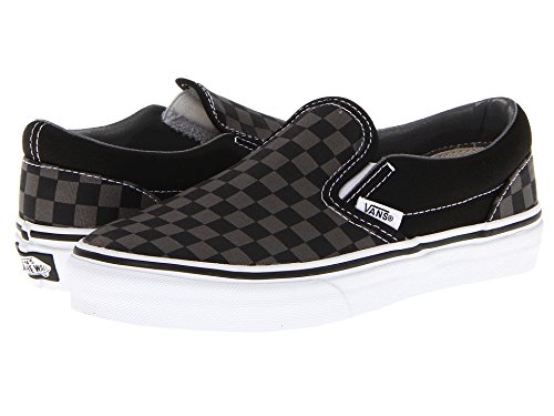 Vans Kids Classic Slip-On (Checkerboard) Blk/Pewter Skate Shoe 1.5 Kids US