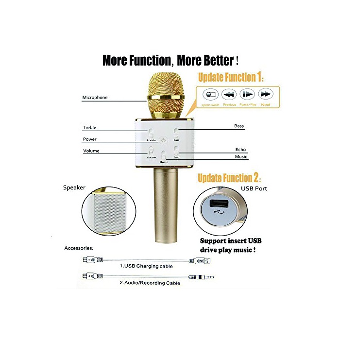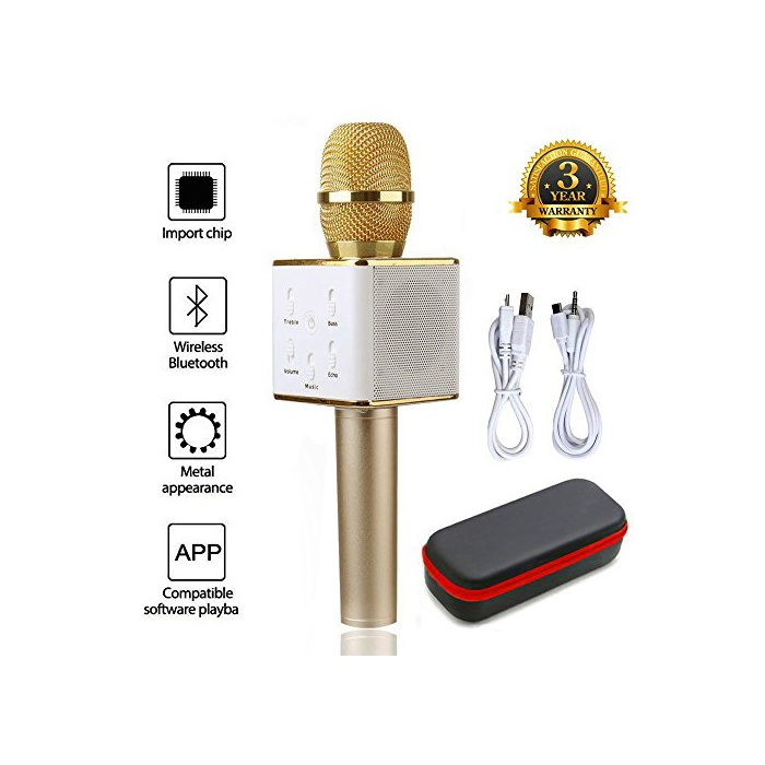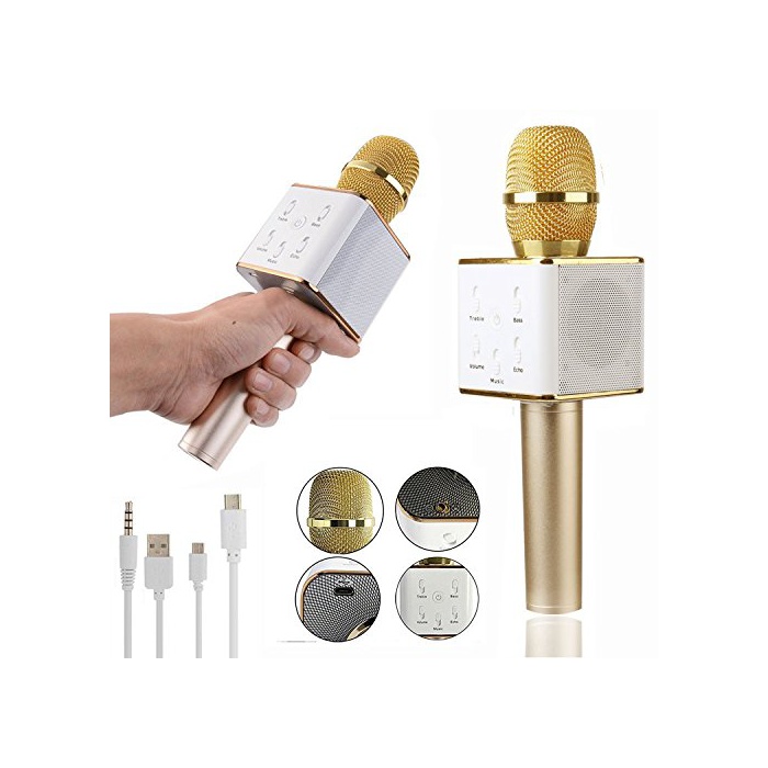 JDSenYe 카라오케 마이크 애플iPhoneandroid 스마트 폰(금)를 위해의 Q7wire 레스 마법 카라오케 소형 블루 tooth 마이크로 폰 스피커