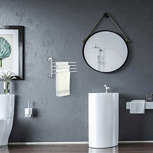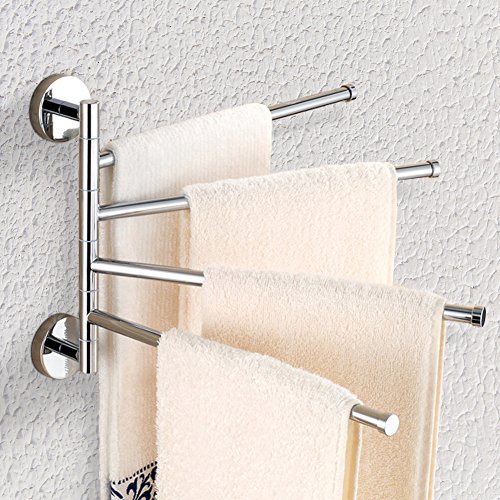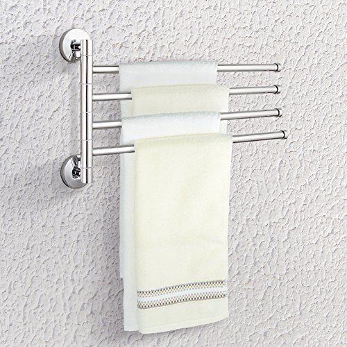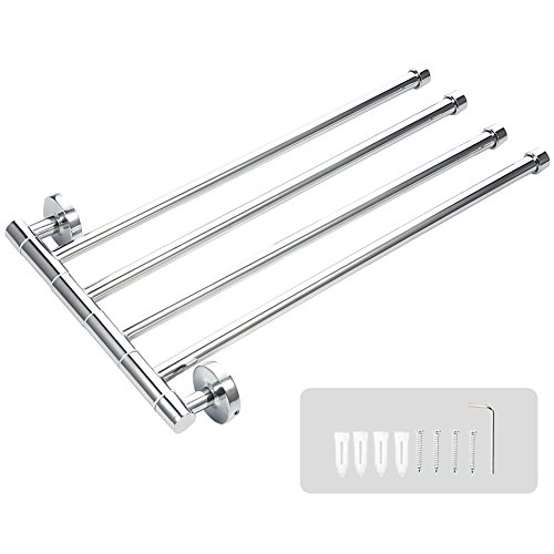 TOPINCN 304 Stainless Steel Swing Out Towel Bar 4-Bar Folding Arm Swivel Hanger Bathroom Storage Organizer Space Saving Wall Mount