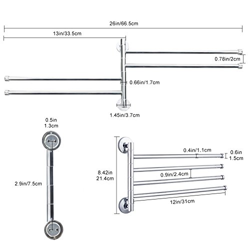 Eliminate Clutter:Having multiple swivel arms keeps wet towels apart for quicker dry time. Perfect for areas with limited space and compact enough to fit anywhere. Such as a small bathroom to hang handtowels, face towels and (folded) bath towels, in the kitchen for dish towel and dish cloths, in your motorhome/camper/RV,near your pool,in your cabinet for scarves or ties, in your laundry room to hang items you want to dry. Reaching the towels with ease and handy for towels to dry.