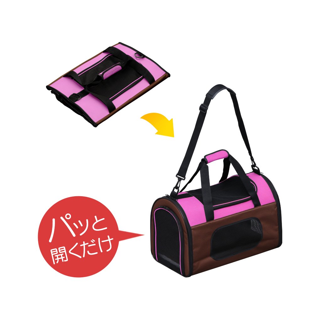 【商品説明】:いつも一緒におでかけできる軽くて丈夫なポリエステル製のキャリーです。 上部メッシュ部分がファスナーで開閉でき、ロールアップして固定できます。上からの出し入れが可能です。 折りたたんでコンパクトに収納できます。 汚れをふき取りやすい内側PVC加工です。 肌触り抜群のふわふわマット付きです。 付属の飛び出し防止ベルトとシートベルトで簡単に固定ができ、ドライブの時も安心です。 "