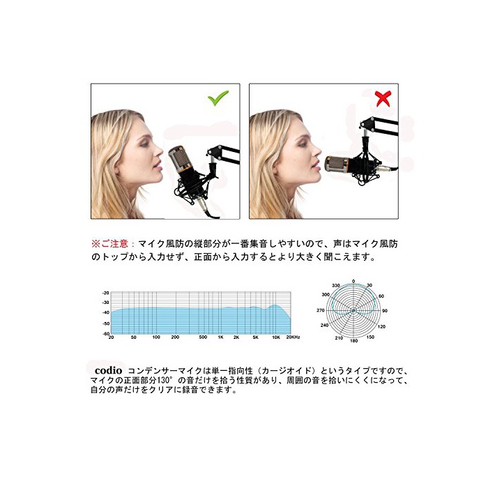원본상품명: Codio コンデンサ マイク スタジオ 一指向性 集音 高音質 音 宅 ゲム況 生放送 3.5mm プラグインパワ