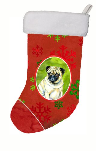 Caroline's Treasures LH9342-CS Pug Red and Green Snowflakes Holiday Christmas Stocking, 11 x 18", Multicolor