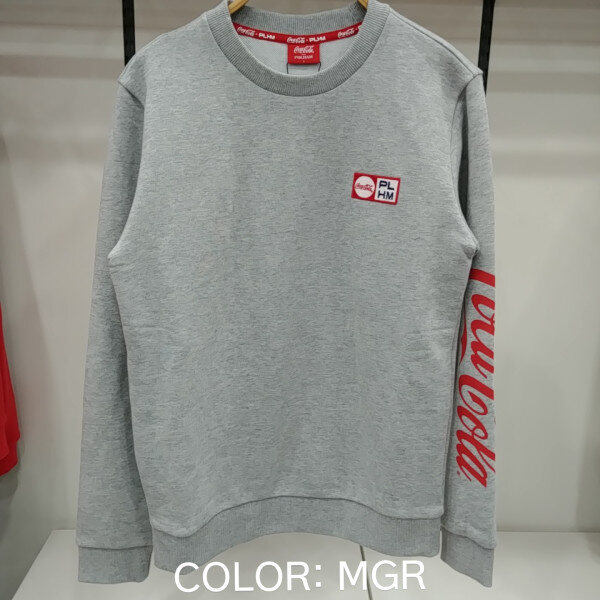 코카콜라 콜라보 맨투맨 티셔츠입니다.RD,MGR 컬러는 왼쪽가슴에 폴햄과 코카콜라의 자수 와펜이 있으며 왼쪽 소매의 코카콜라 레터링이 포인트 입니다.NV 컬러는 가숨 중앙에 코카콜라 로고 자수가 있으며 뒷면 윗쪽에 프린팅과 콜라병자수가 포인트 입니다.WT 컬러는 가슴 중앙에 콜라병 모양이 있습니다.